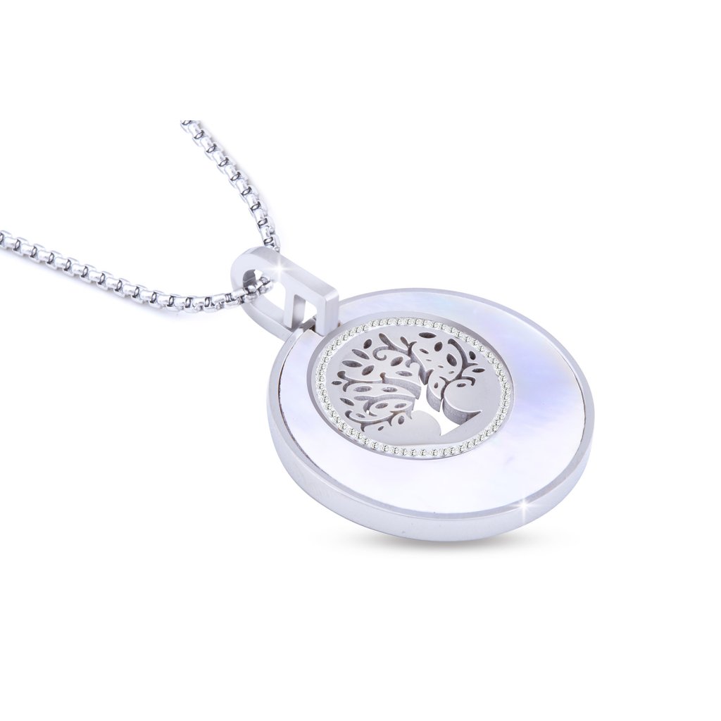 Řetízek z chirurgické oceli s přívěskem, strom života s perletí a zirkony 3001346