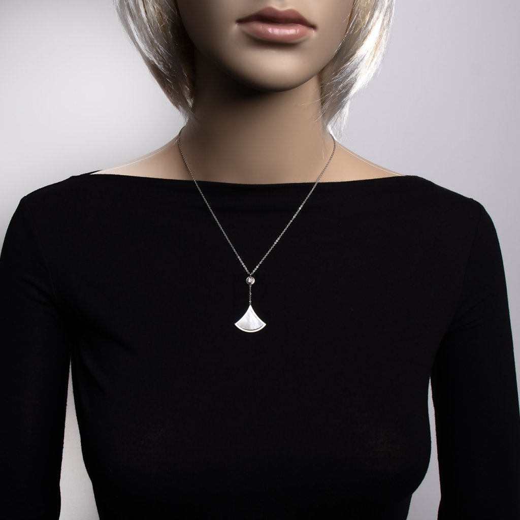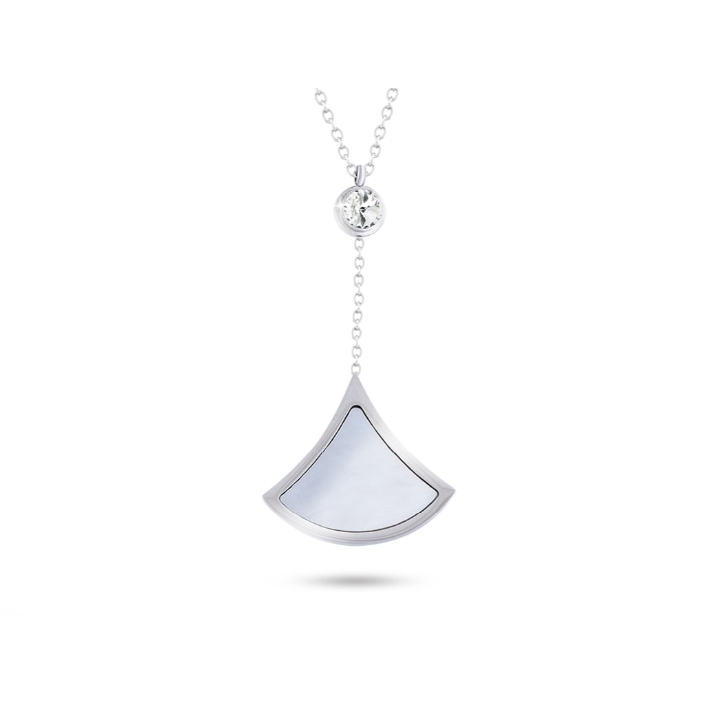 Decentní řetízek s přívěskem vějíře s perletí se zdobeným zirkonem je vyrobený z kvalitní nerezové oceli.
