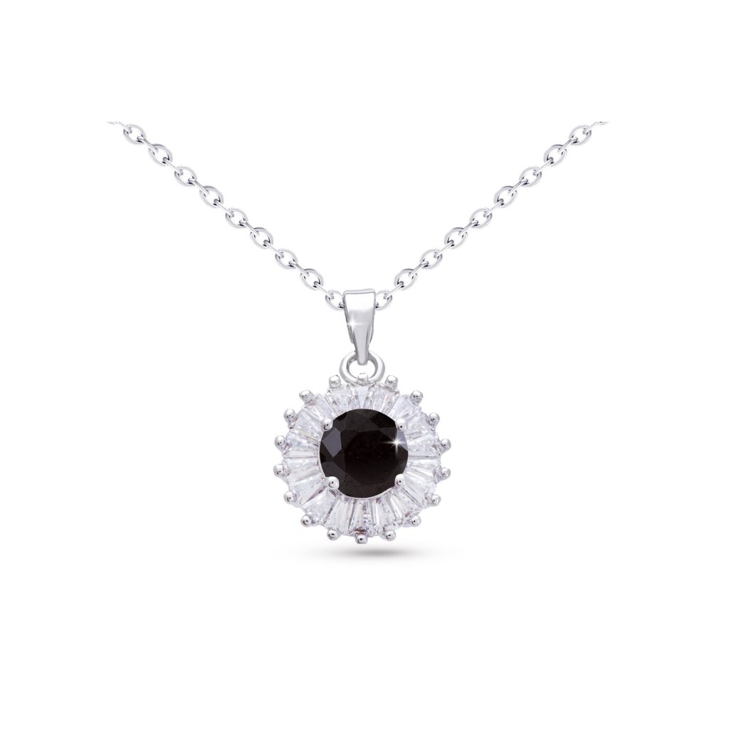- Decentní a jemný řetízek z chirurgické oceli s přívěskem, zirkonový kruh s černým kamínkem.