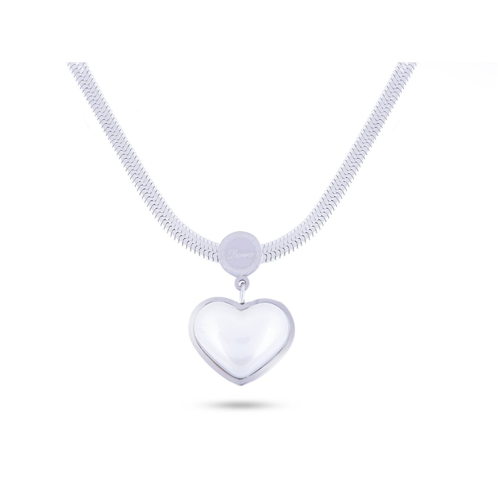 Skládaný řetízek s přívěskem perleťového srdce je vyrobený z kvalitní nerezové oceli. Je univerzálním doplňkem k jakémukoliv oděvu. Náhrdelník je velice vkusný. Zapíná se na karabinku.Tento výrobek neobsahuje těžké kovy.