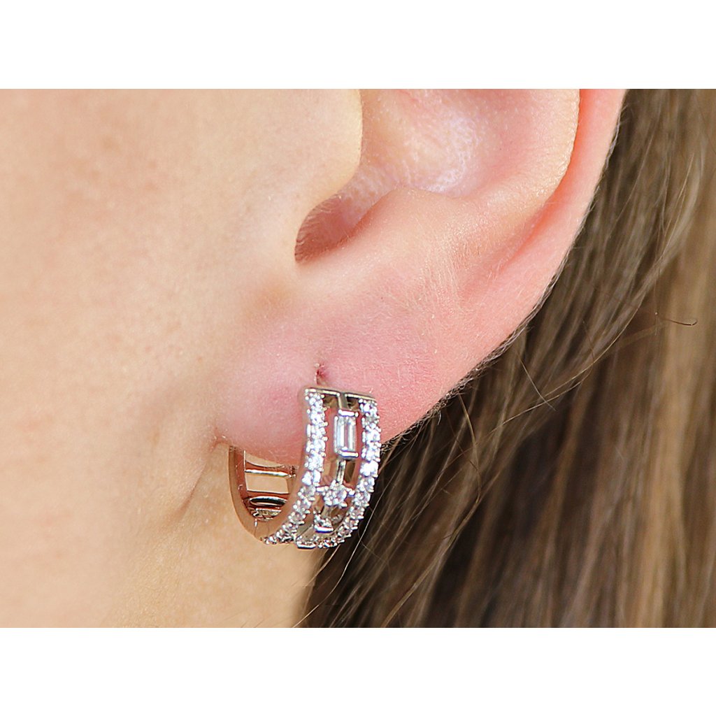 - Představujeme rhodiované náušnice - dokonalý způsob, jak udělat decentní dojem. Tyto lesklé náušnice ve tvaru visících kroužků vyplněné čirými zirkony a ozdobnými průřezy. Pro větší lesk a ochranu byly pokoveny rhodiem, takže budou vypadat skvěle po mnoho let! Klasické zapínání je antialergické, což zajistí vaše pohodlí během nošení a je ideální pro citlivé uši. Tyto jemné a zároveň lehké náušnice jsou ideální volbou. Díky těmto elegantním náušnicím vyniknete v davu, jsou ideální pro každou zvláštní příležitost i každodenní nošení.