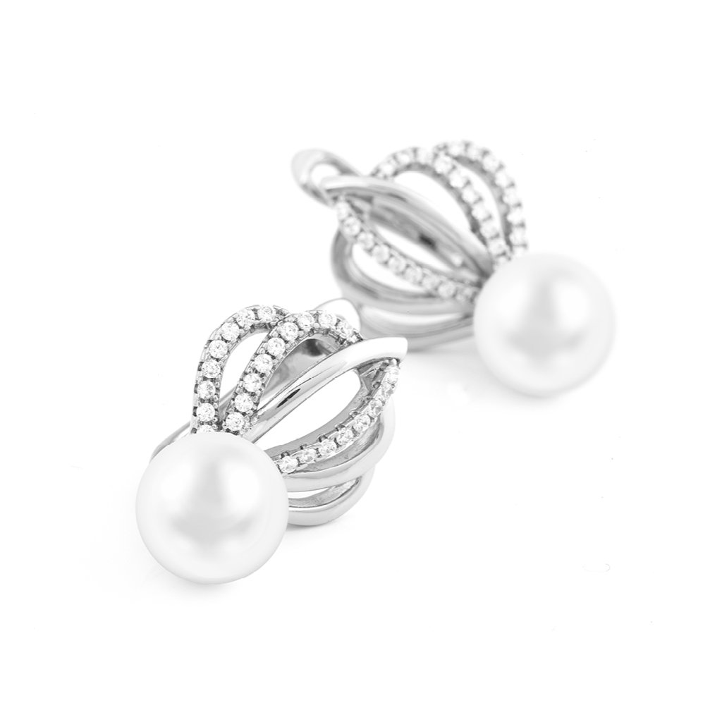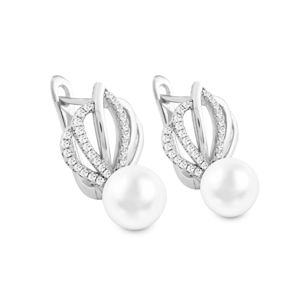 Náušnice rhodiované s perlou a drobnými zirkony, sluší ženám všech generací.