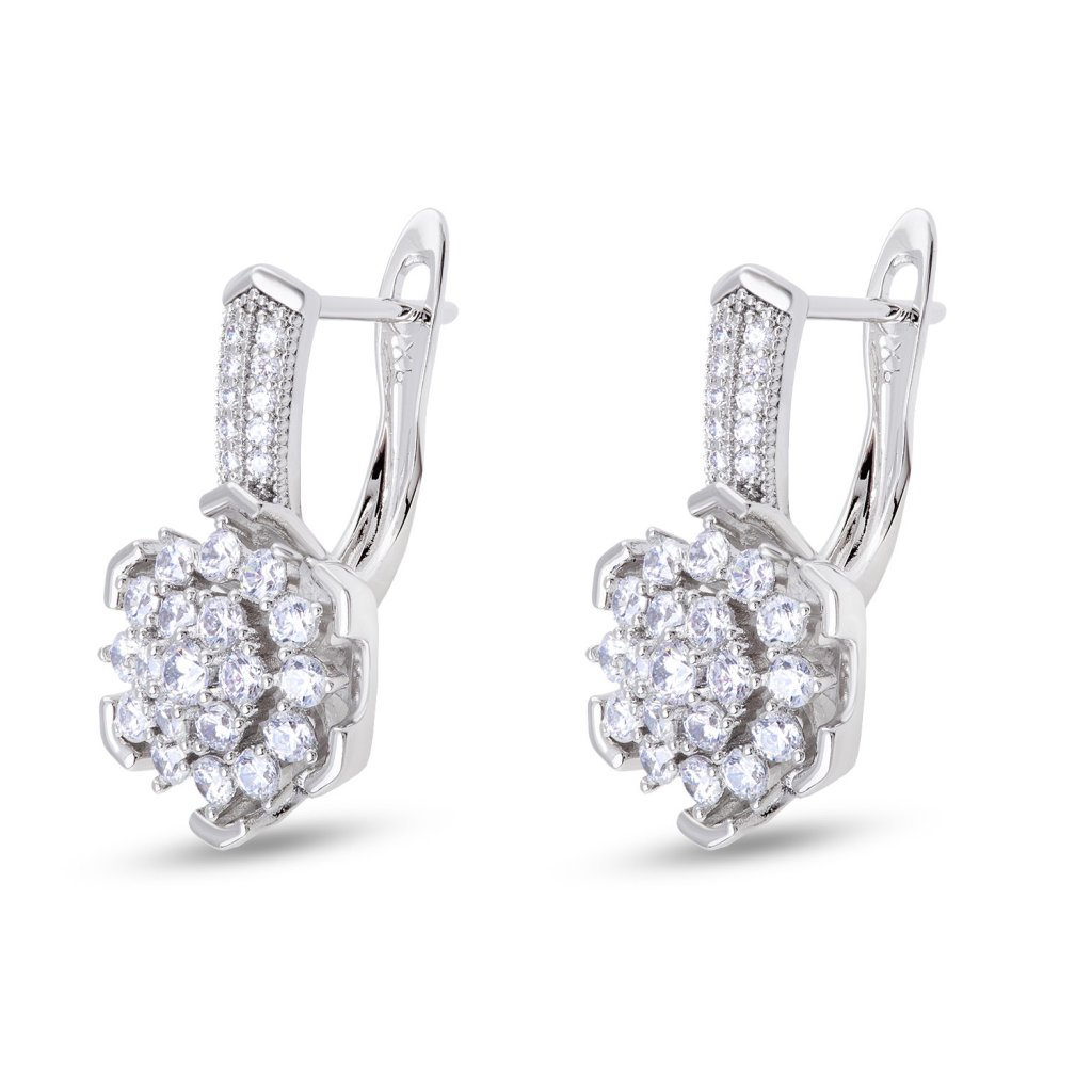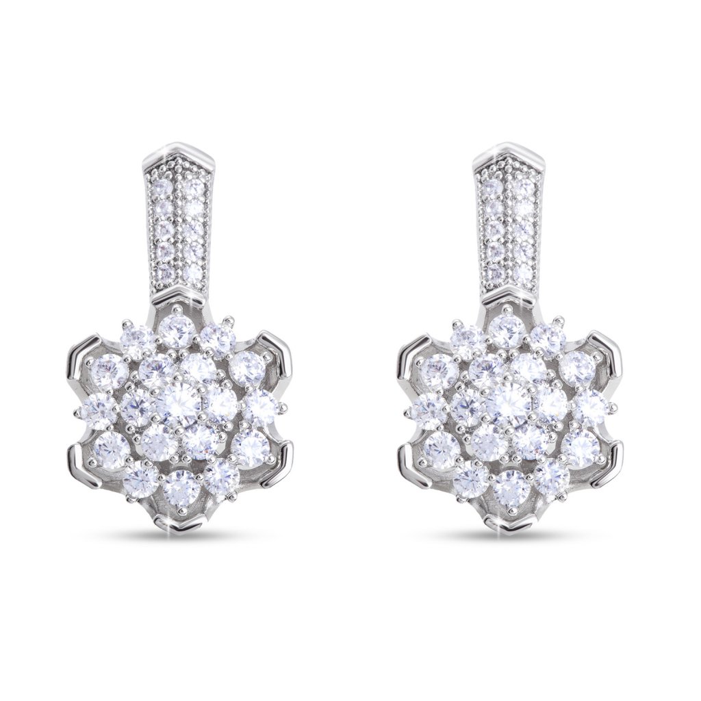 Rhodiované náušnice, visací květiny vykládané čirými zirkony