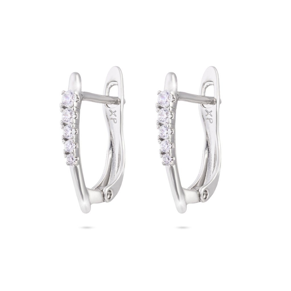 - Rhodiované náušnice visací, asymetrického typu se zirkony.