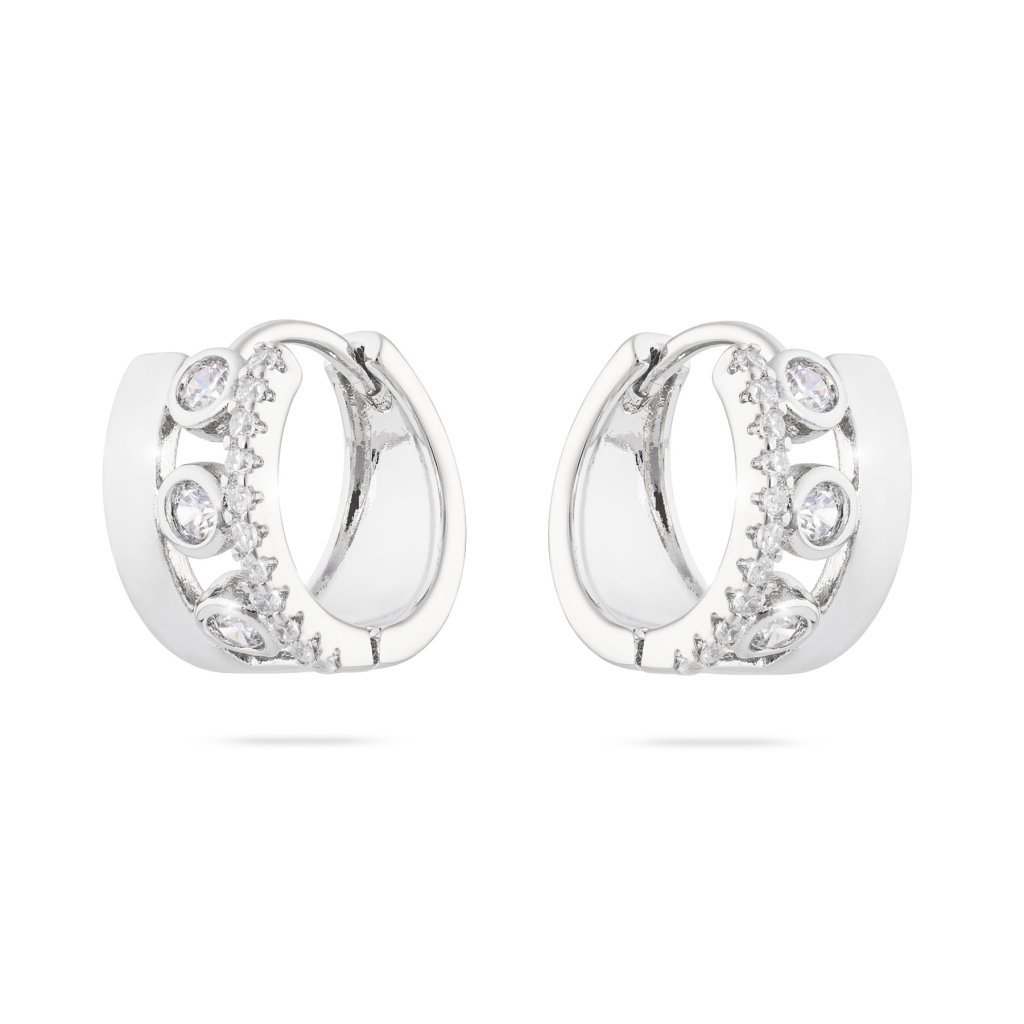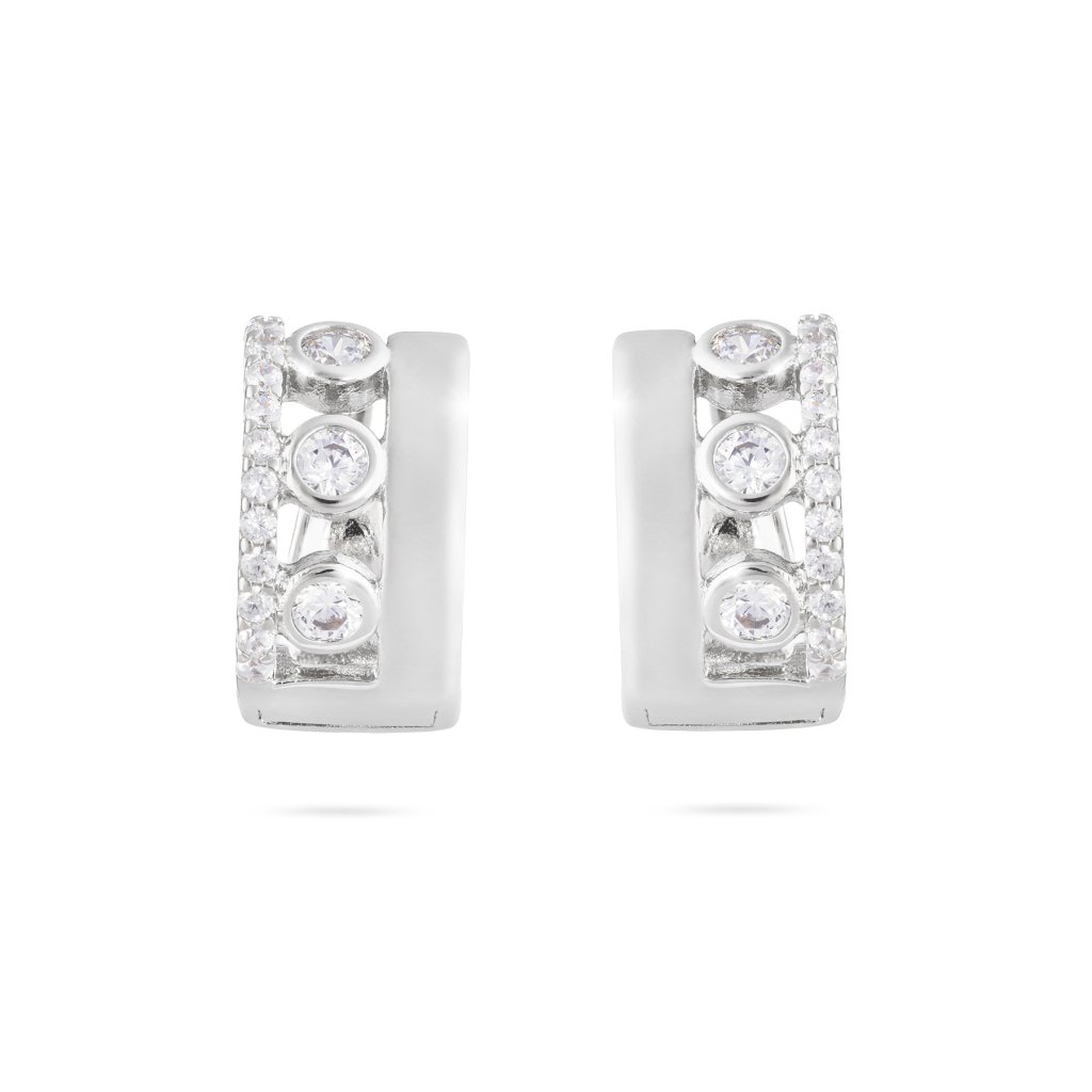 - Rhodiované náušnice visací, kroužek ozdobený kulatými zirkony.
