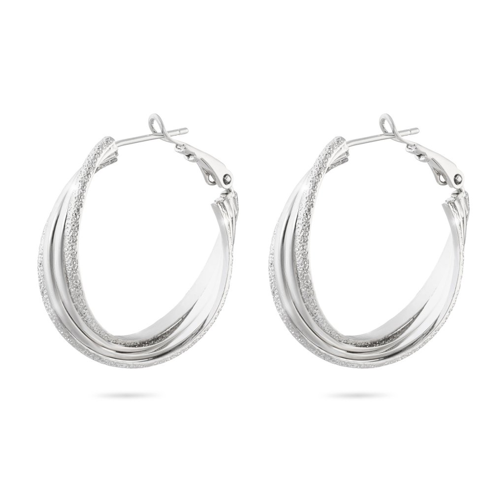 - Rhodiované náušnice visací, lesklý zakroucený kroužek.