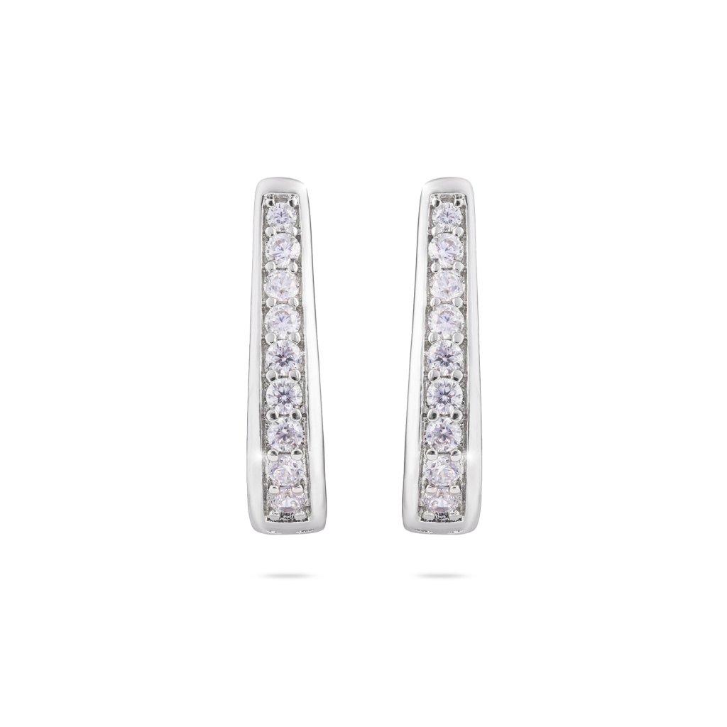 - Rhodiované náušnice visací, oválek ozdobený pásem zirkonů.