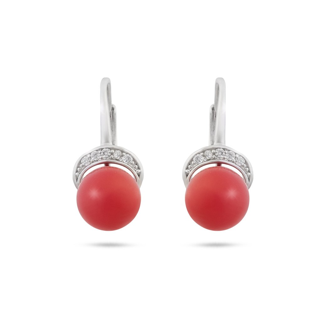 Módní dámské náušnice, rhódiované visací, ozdobené červenou perličkou se zirkony. Velmi kvalitní zpracování.