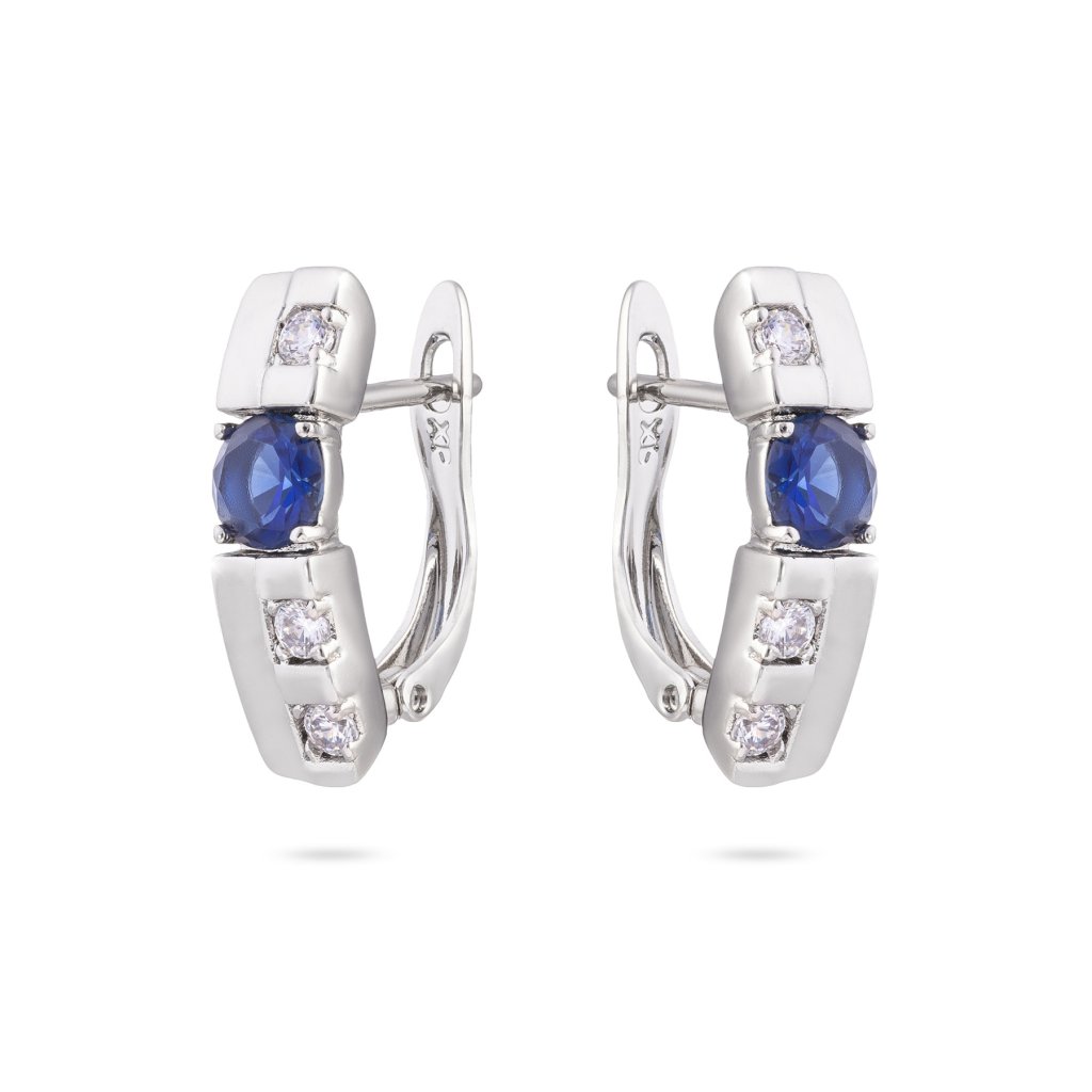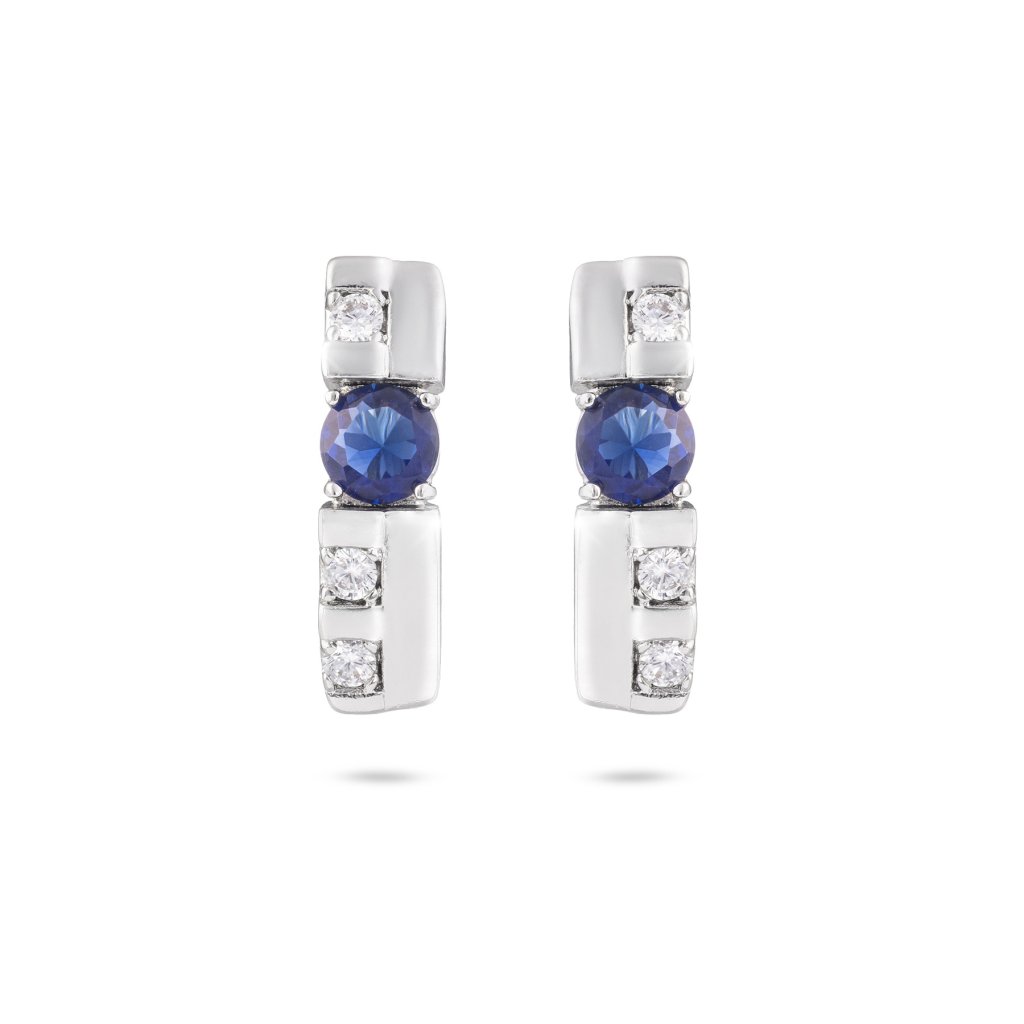 - Rhodiované náušnice visací, proužek ozdobený modrým zirkonem.