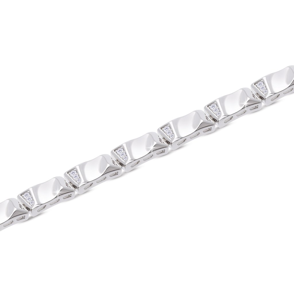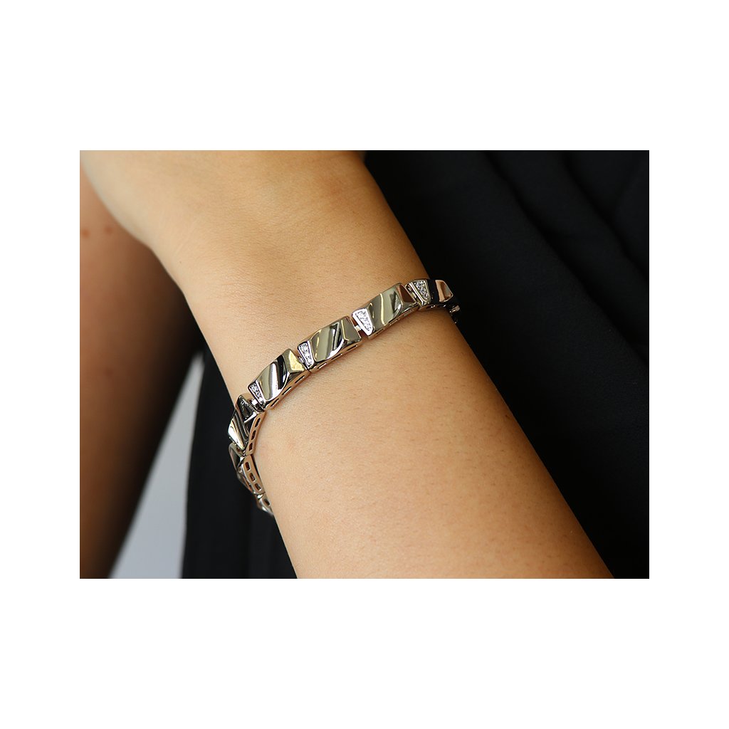 - Rhodiovaný náramek, asymetrické obdélníky se zirkony.