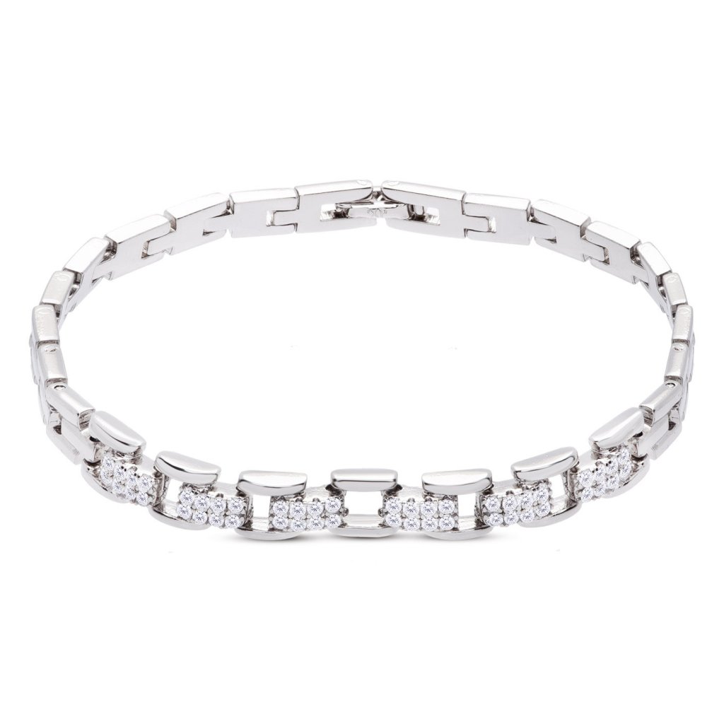 - Představujeme rhodiovaný náramek složený z členitých článků a čirými zirkony. Tento náramek je vyroben z nejkvalitnějšího rhodiovaného kovu pro úžasnou povrchovou úpravu, která časem nezčerná. Je zdoben třpytivými kamínky čiré zirkonie, které mu dodávají ještě okouzlující vzhled. A díky jeho antialergickým vlastnostem a dlouhé životnosti, ho můžete nosit každý den bez obav. Dokonale masivní a také elegantní - nenechte si ujít možnost mít tento skvostný kousek ve své sbírce šperků!