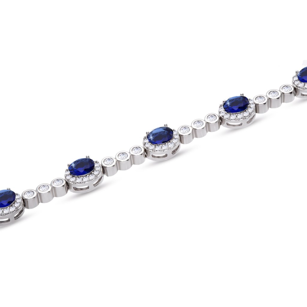 - Rhodiovaný náramek, ozdobený modrým kulatými zirkony.