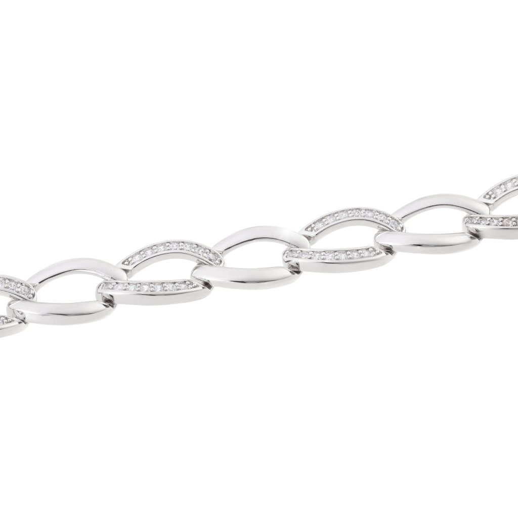 - Elegantní náramek je vyrobený z bižuterního kovu, který je rhodiovaný. Náramek je vysázený čirými zirkony.