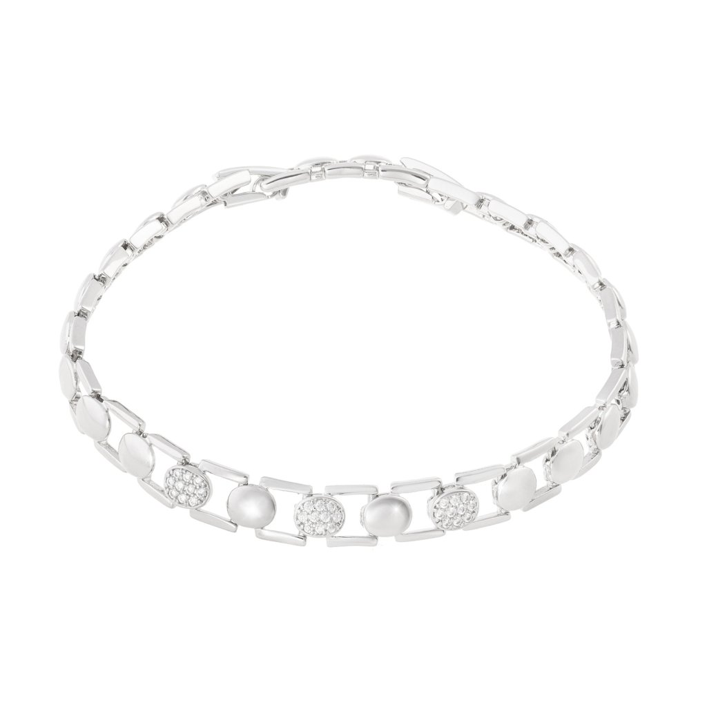 Rhodiovaný náramek, spojená kolečka se zirkony 2002248