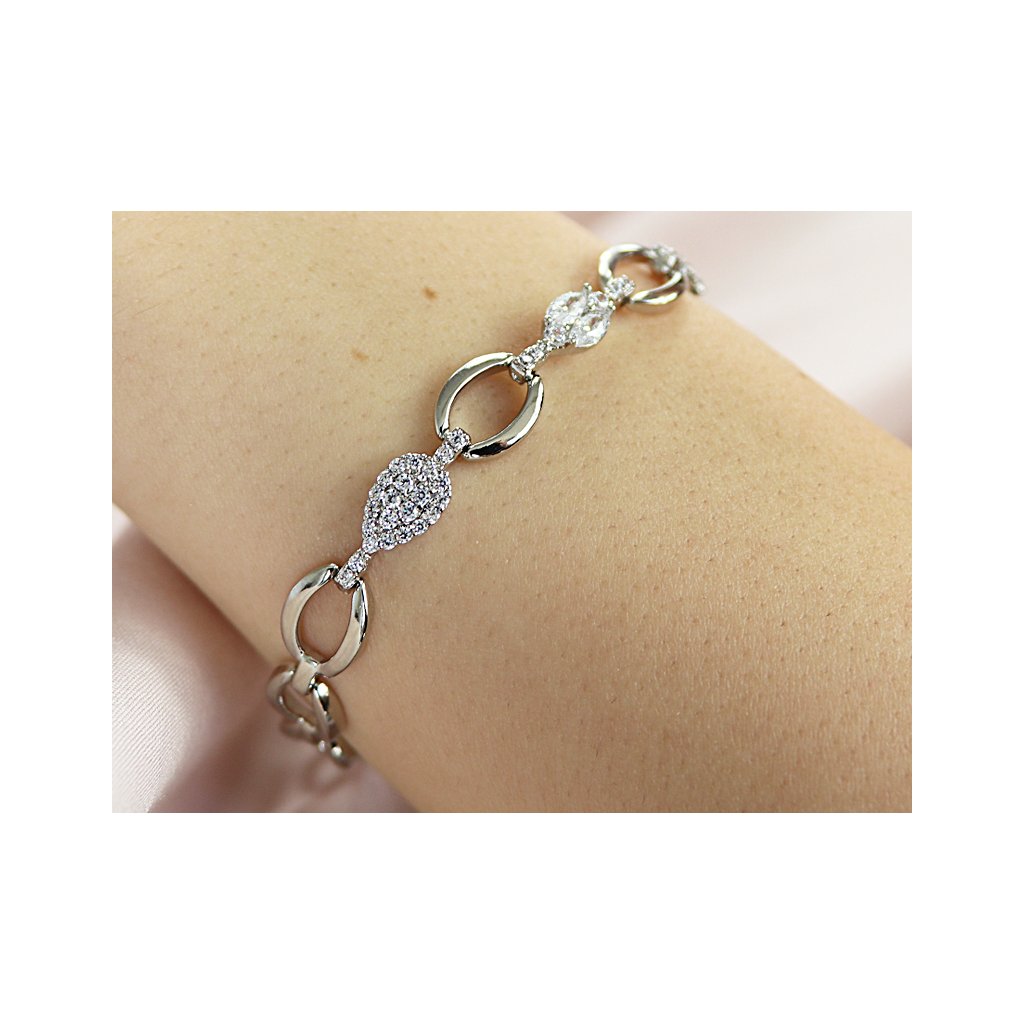 - Rhodiovaný náramek, spojená zrna se zirkonovými ozdobami - srdce, kapka.