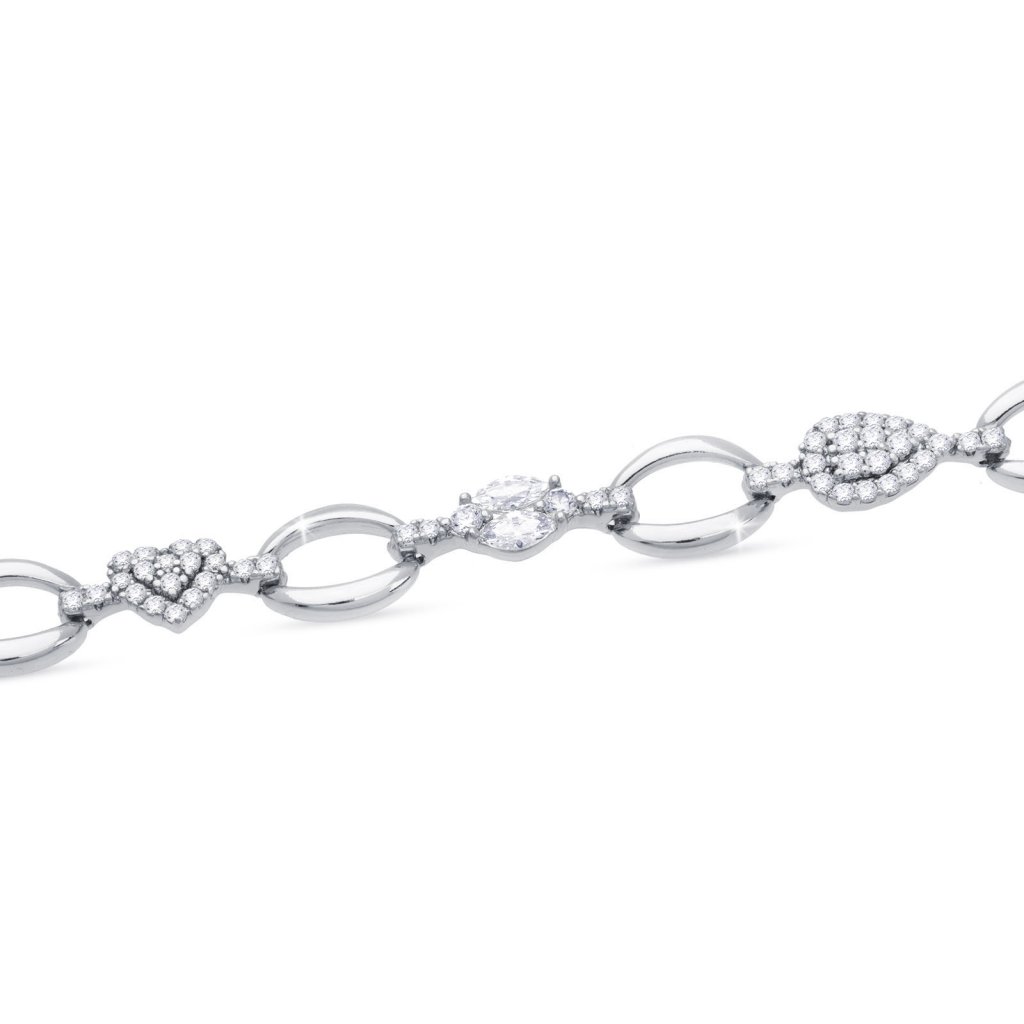 Rhodiovaný náramek, spojená zrna se zirkonovými ozdobami - srdce, kapka 2002391