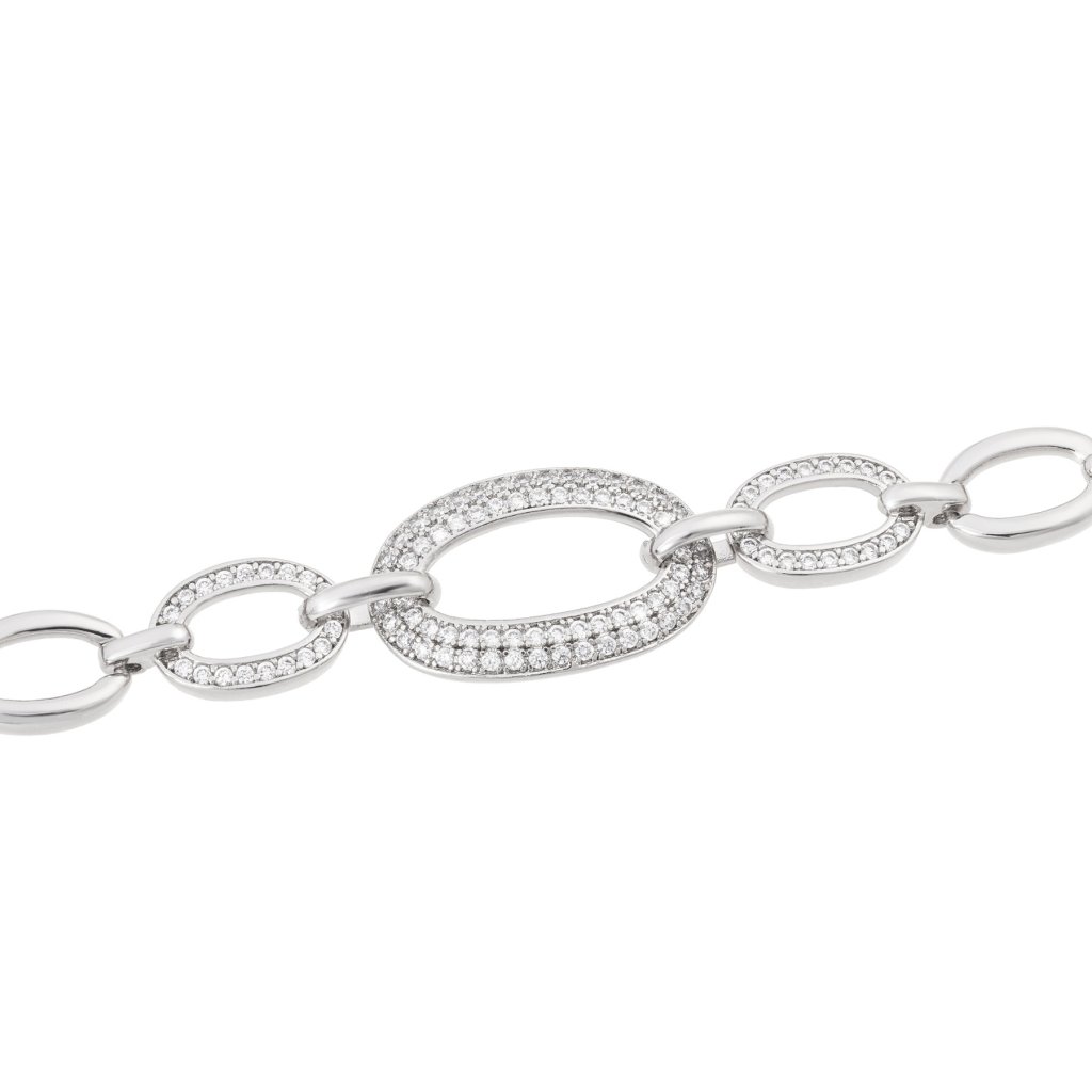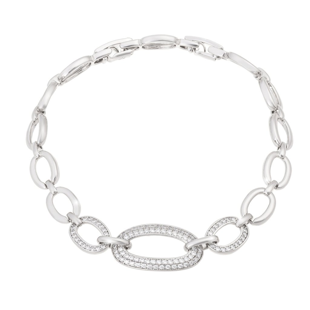Rhodiovaný náramek, spojené oválky se zirkony 2002207