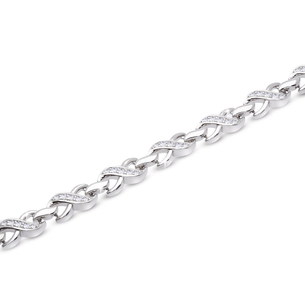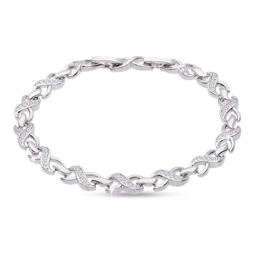 - Představujeme rhodiovaný náramek složený ze spojených symbolů nekonečna s čirými zirkony. Tento náramek je vyroben z nejkvalitnějšího rhodiovaného kovu pro úžasnou povrchovou úpravu, která časem nezčerná. Je zdoben třpytivými kamínky čiré zirkonie, které mu dodávají ještě okouzlující vzhled. A díky jeho antialergickým vlastnostem a dlouhé životnosti, ho můžete nosit každý den bez obav. Dokonale masivní a také elegantní - nenechte si ujít možnost mít tento skvostný kousek ve své sbírce šperků!