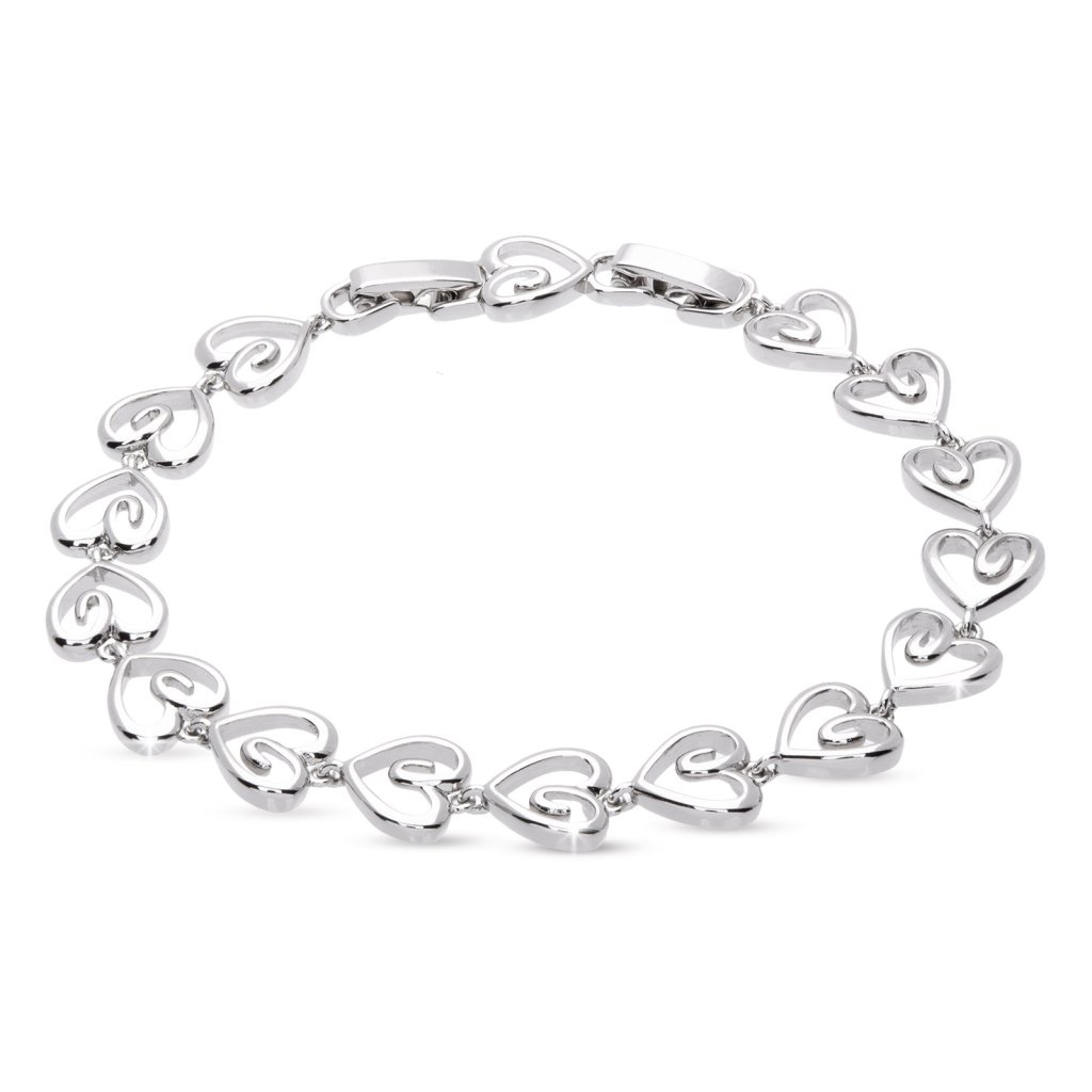 - Rhodiovaný náramek, spojené zkroucené srdce.