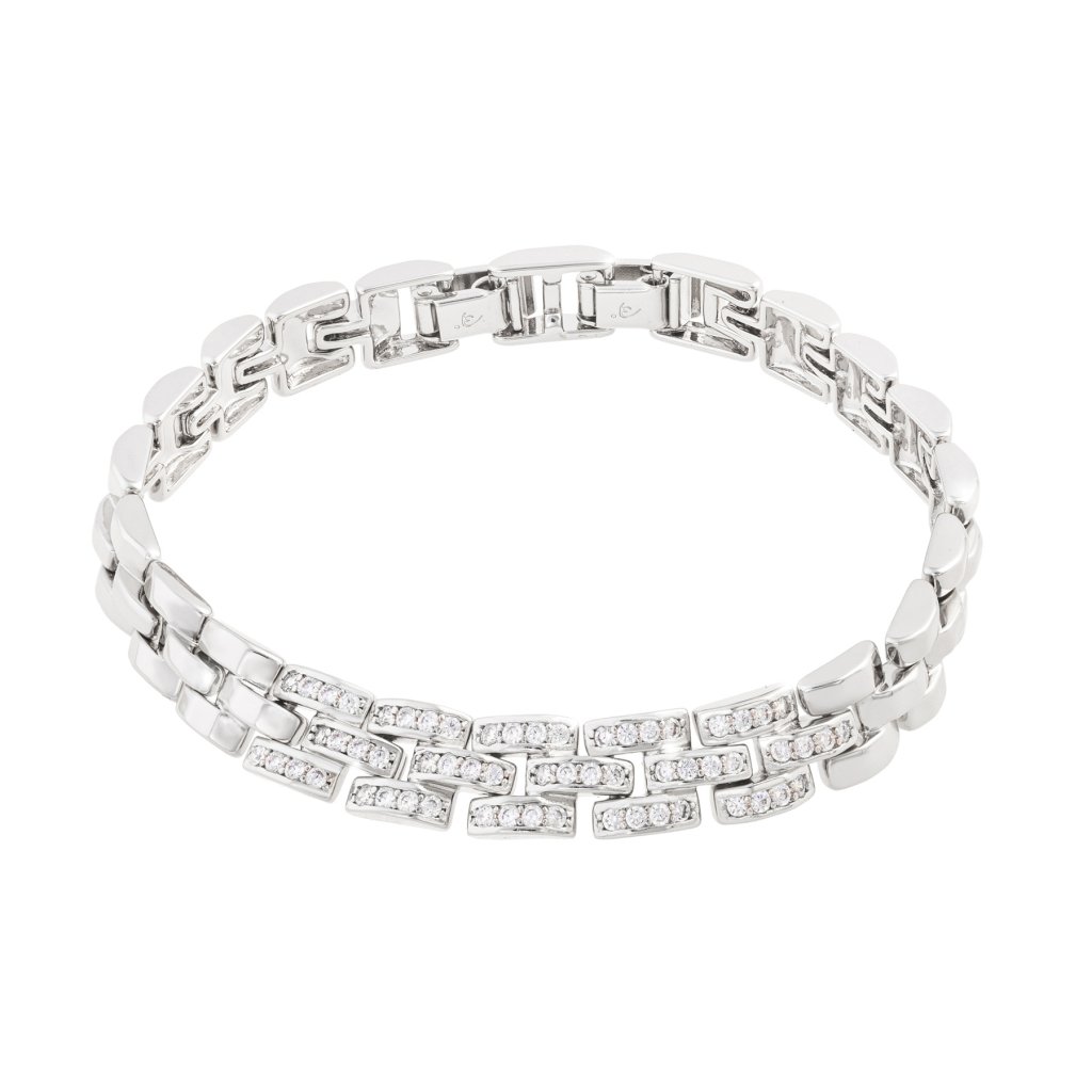 Rhodiovaný náramek masivní, pletený se zirkony 2002246