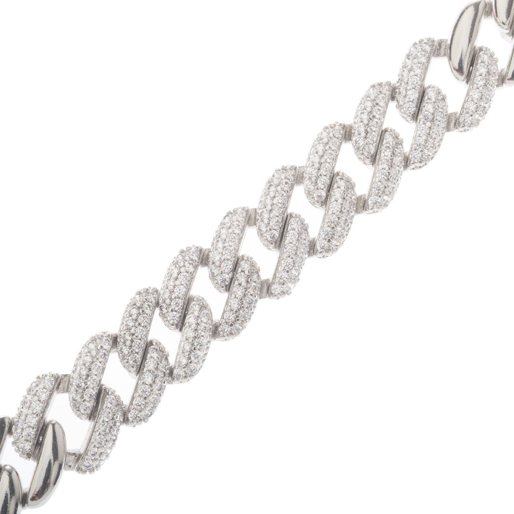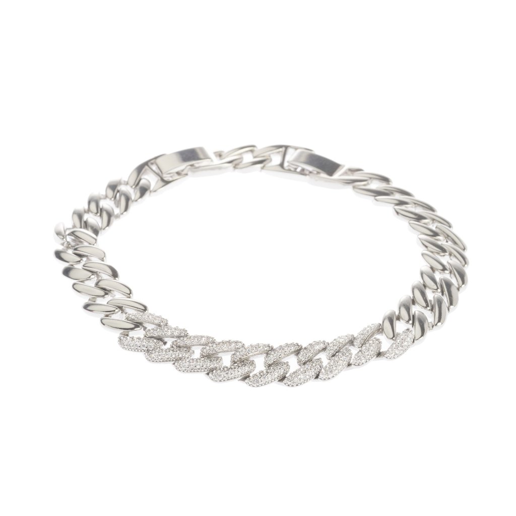 Náramek rhodiovaný se zirkony, propletený. Krásně se lesknoucí náramek, odlehčený.