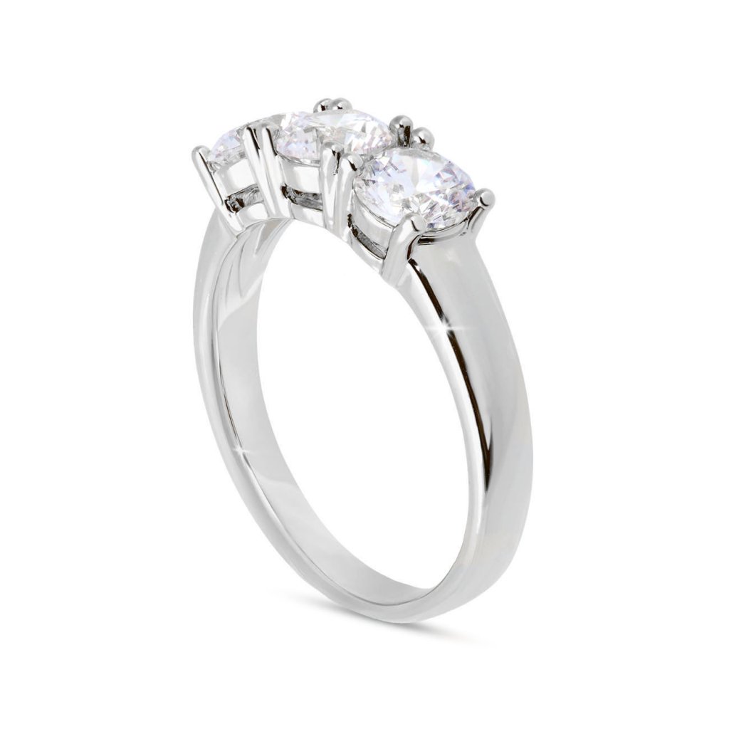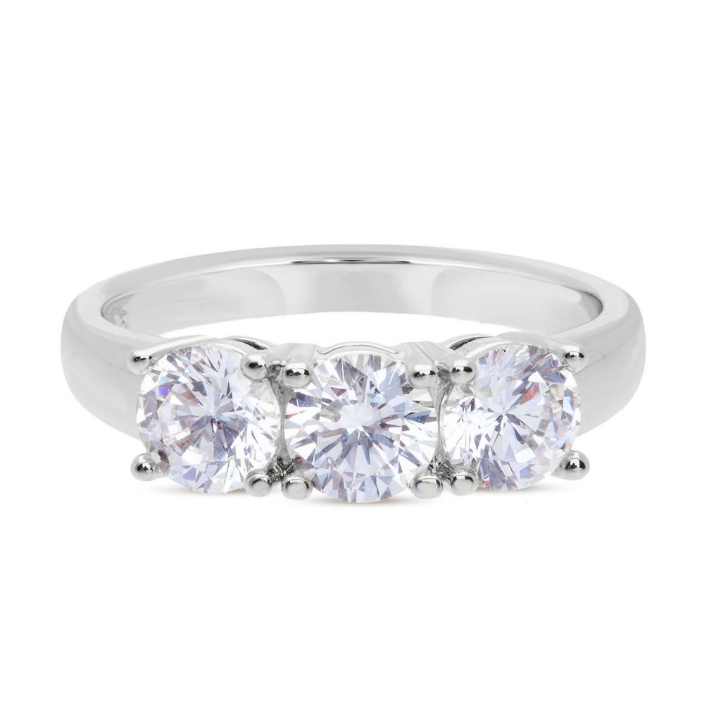 Rhodiovaný prstýnek s třemi kruhovitými zirkony 4000404