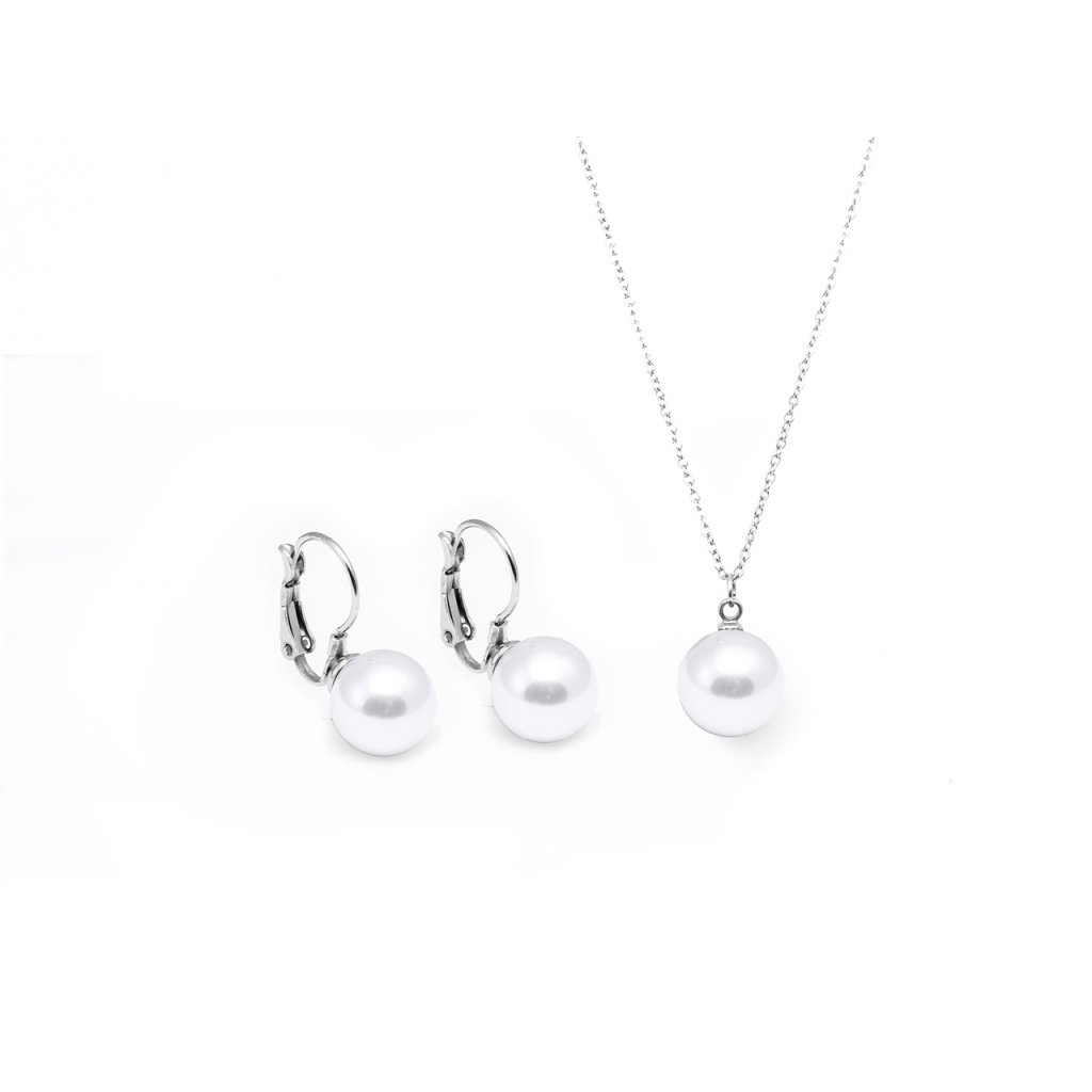 Set z chirurgické oceli náušnice+řetízek, perla-bílá 3001017