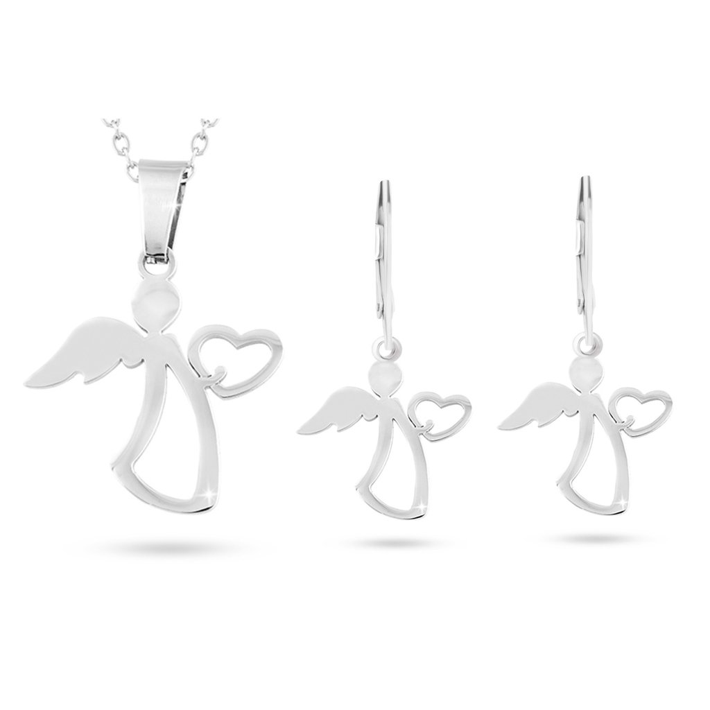 Set z chirurgické oceli s motivem andílka se srdíčkem, za bezkonkurenční cenu. Tento set je skvělou volbou pro běžné nošení, skvěle s ním doplníte jednoduché šaty nebo oblíbený top. Díky propracovanosti tohoto setu, vypadá set velmi elegantně a jemně.