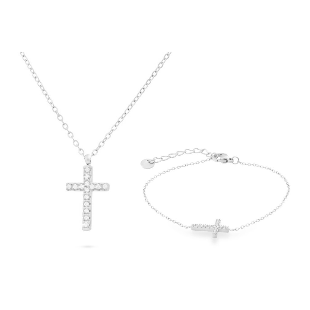 Set z chirurgické oceli s křížkem za bezkonkurenční cenu. Tento set je skvělou volbou nejen pro slavnostnější příležitosti, ale skvěle s ním doplníte jednoduché šaty nebo oblíbený top. Díky propracovanosti tohoto setu, vypadá set velmi elegantně a jemně.