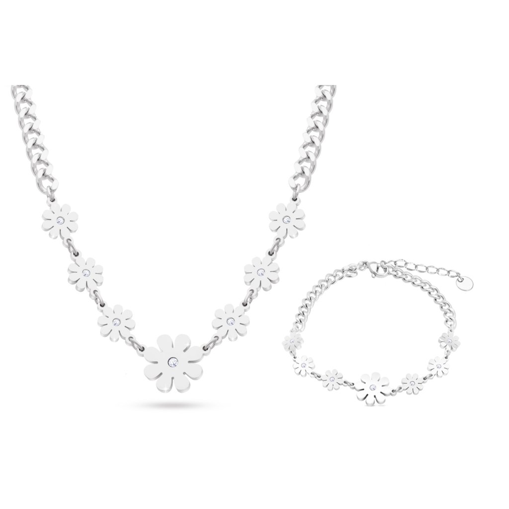 Set z chirurgické oceli, květiny se zirkony, řetízek + náramek 233