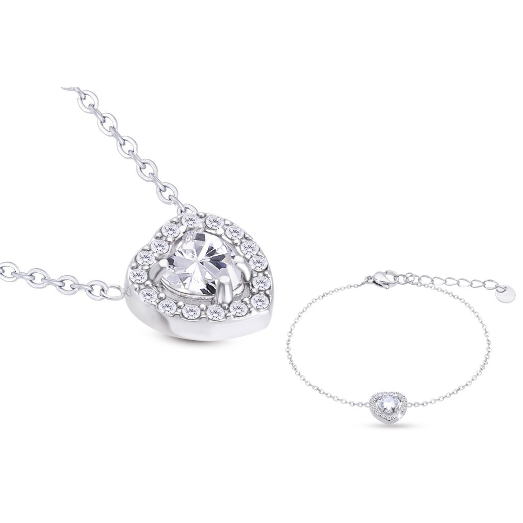 VERONA 308 Set řetízek a náramek, srdce osázené čirým zirkonem
