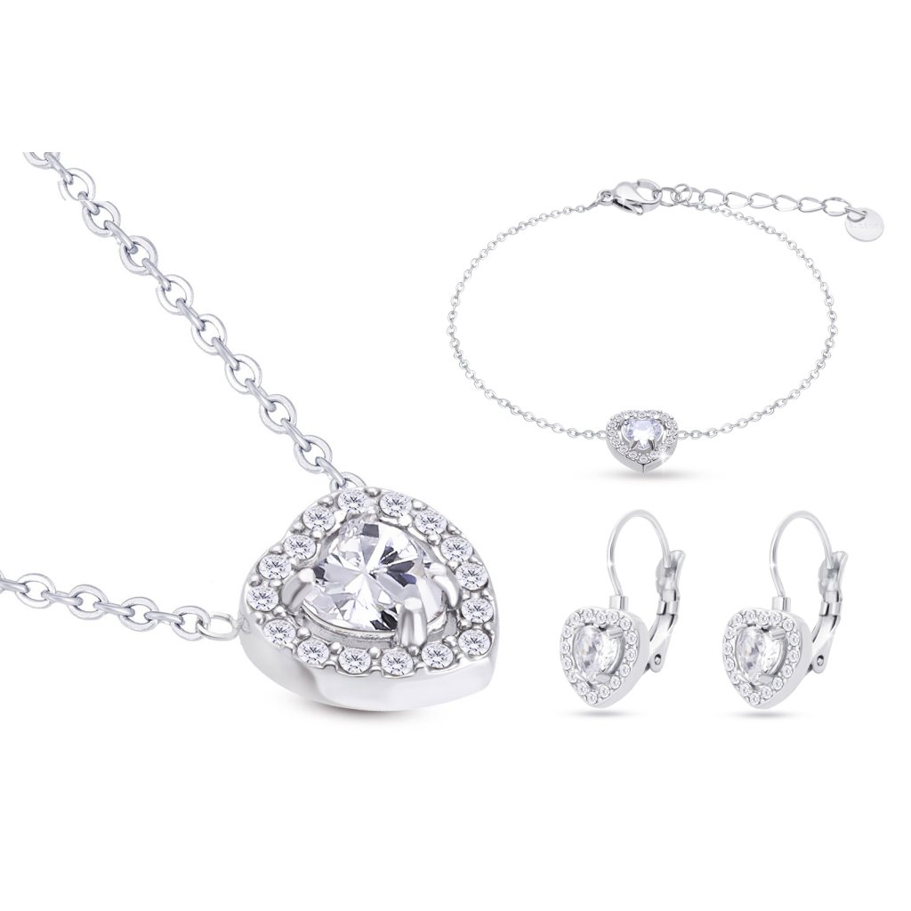 VERONA 311 Set řetízek, náušnice a náramek, srdce osázené čirým zirkonem