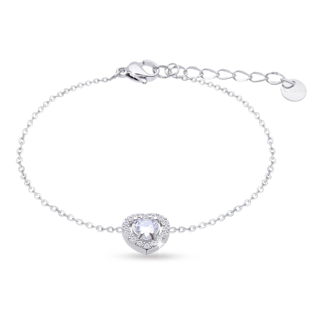 - Set z chirurgické oceli, srdce osázené čirým zirkonem, řetízek + náušnice + náramek