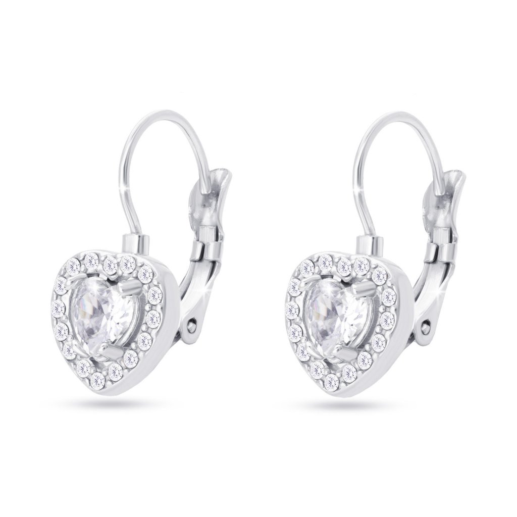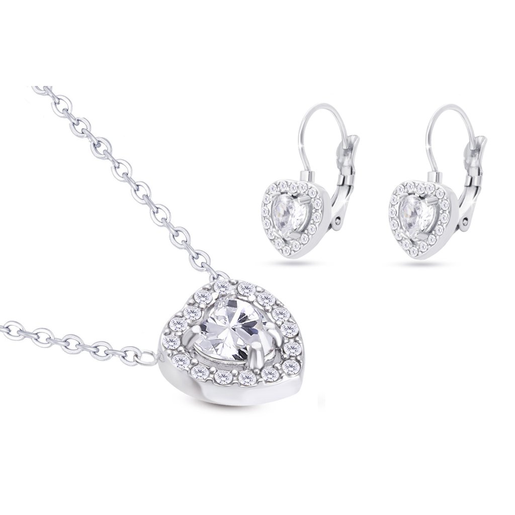 VERONA 305 Set řetízek a visací náušnice, srdce osázené čirým zirkonem