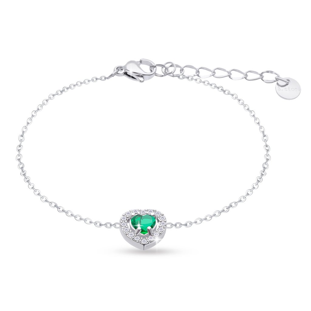 - Set z chirurgické oceli, srdce osázené zeleným zirkonem, řetízek + náramek.