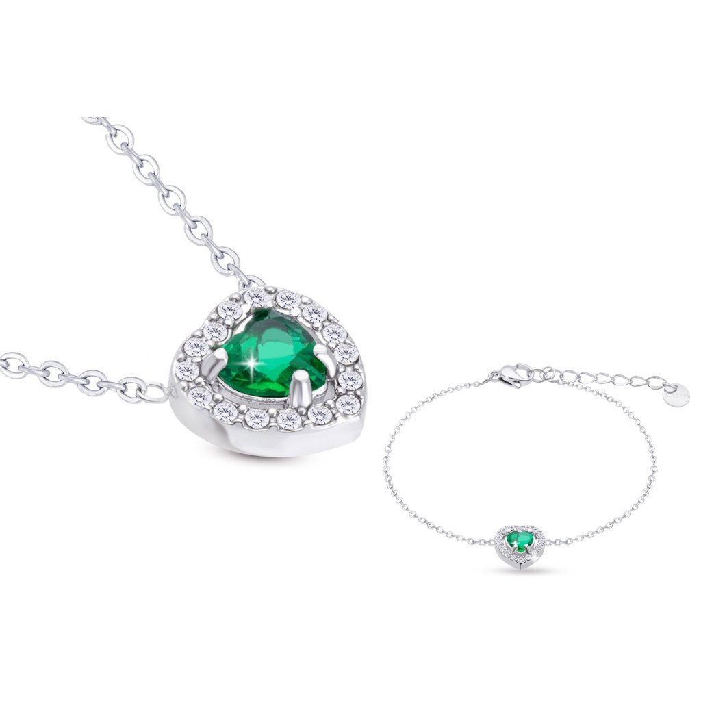 VERONA 310 Set řetízek a náramek, srdce osázené zeleným zirkonem