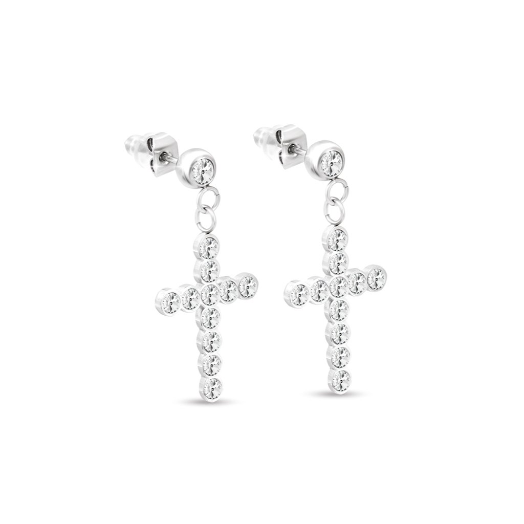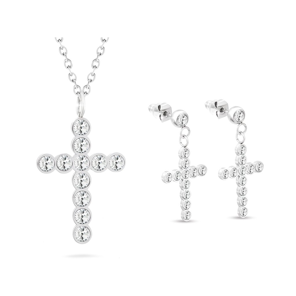 Set z chirurgické oceli kříž, řetízek + náušnice se zirkony 103