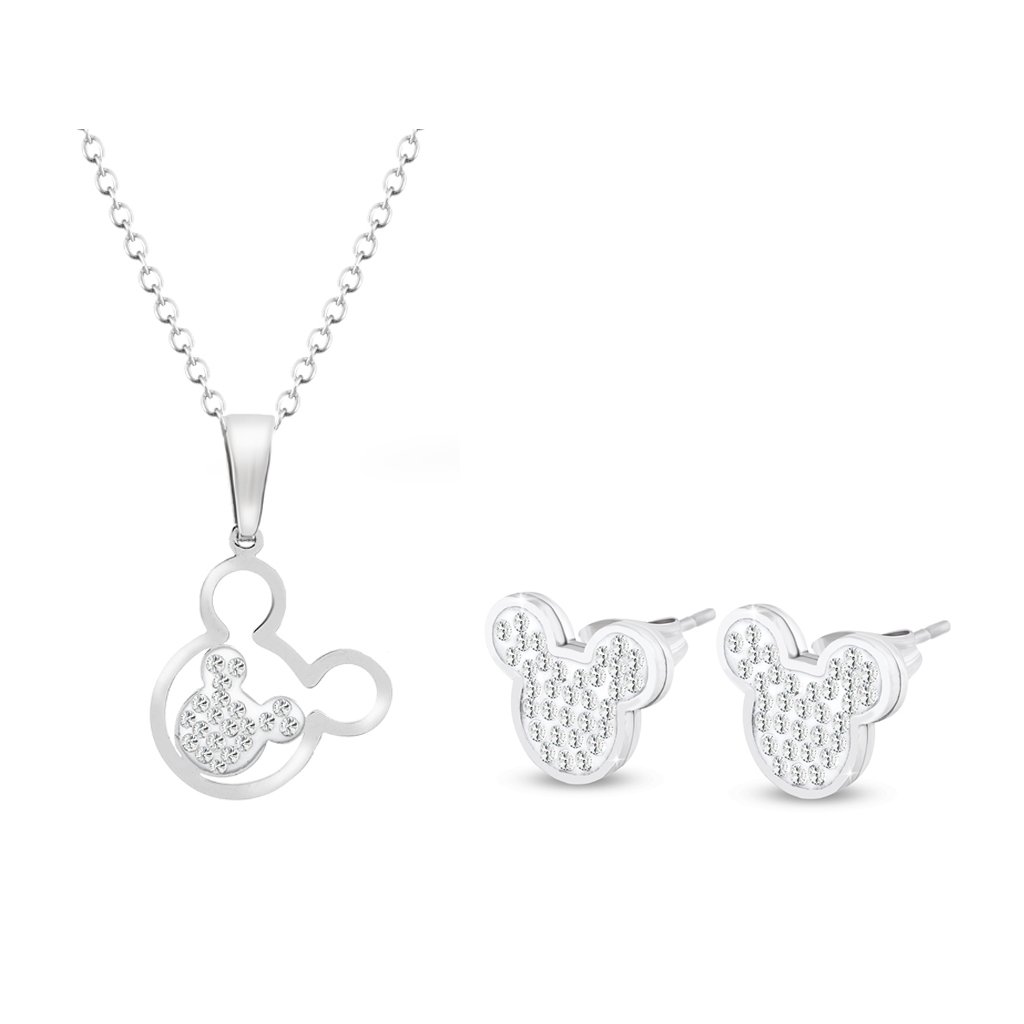 Set z chirurgické oceli s motivem Mickey Mouse, za bezkonkurenční cenu. Tento set je skvělou volbou pro běžné nošení, skvěle s ním doplníte jednoduché šaty nebo oblíbený top. Díky propracovanosti tohoto setu, vypadá set velmi elegantně a jemně.