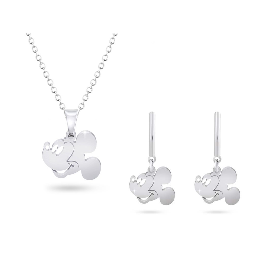 Set z chirurgické oceli s motivem Mickey Mouse, za bezkonkurenční cenu. Tento set je skvělou volbou pro běžné nošení, skvěle s ním doplníte jednoduché šaty nebo oblíbený top. Díky propracovanosti tohoto setu, vypadá set velmi elegantně a jemně.