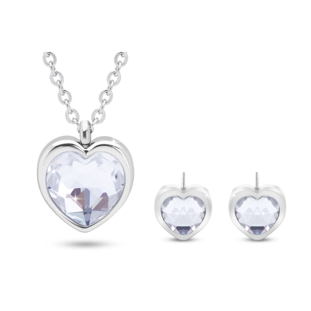 VERONA 0023 Set řetízek a náušnice, srdce s čirými zirkony