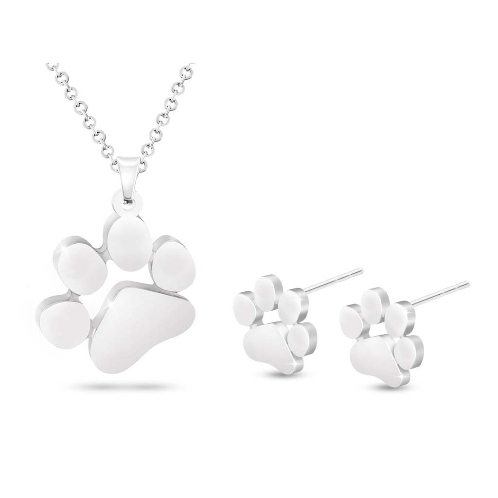 Set z chirurgické oceli s motivem psích tlapiček, za bezkonkurenční cenu. Tento set je skvělou volbou pro běžné nošení, skvěle s ním doplníte jednoduché šaty nebo oblíbený top. Díky propracovanosti tohoto setu, vypadá set velmi elegantně a jemně.