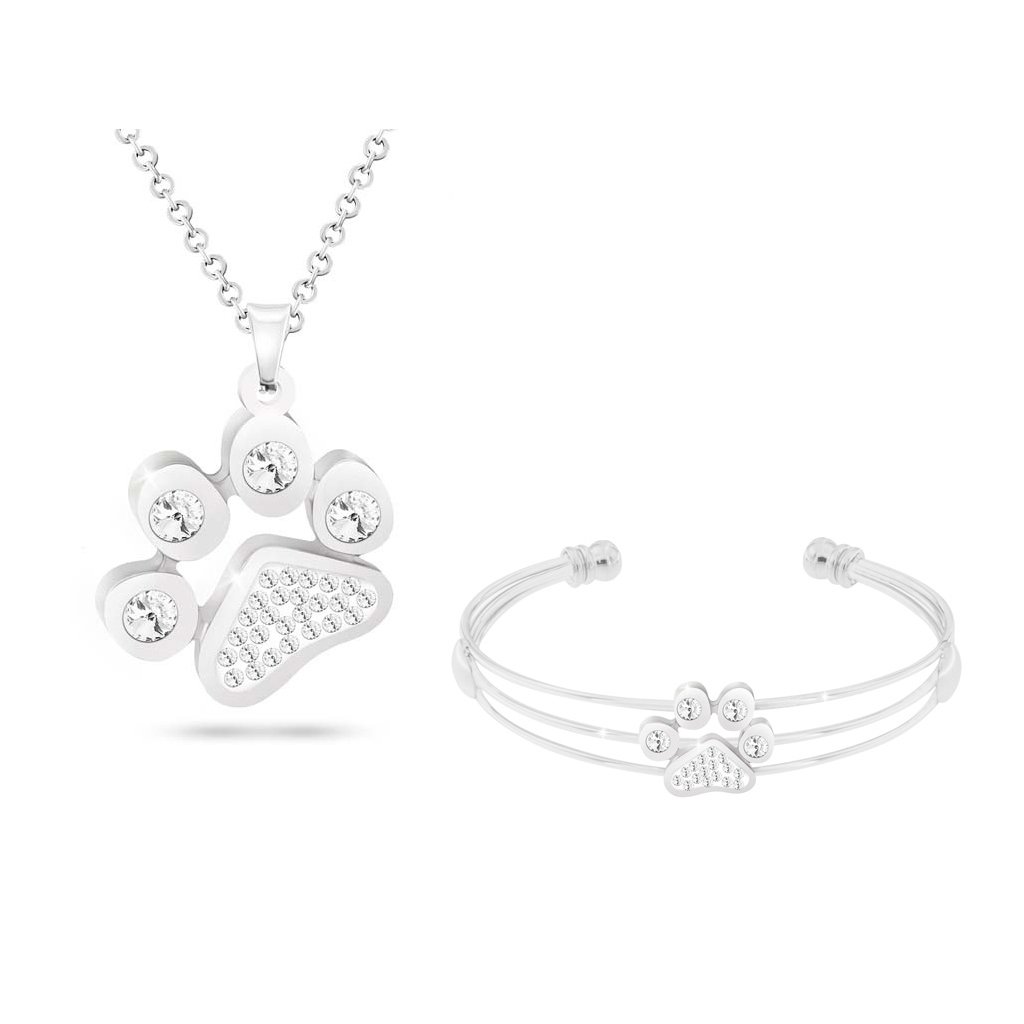 Set z chirurgické oceli tlapka, řetízek + pevný náramek se zirkony 171