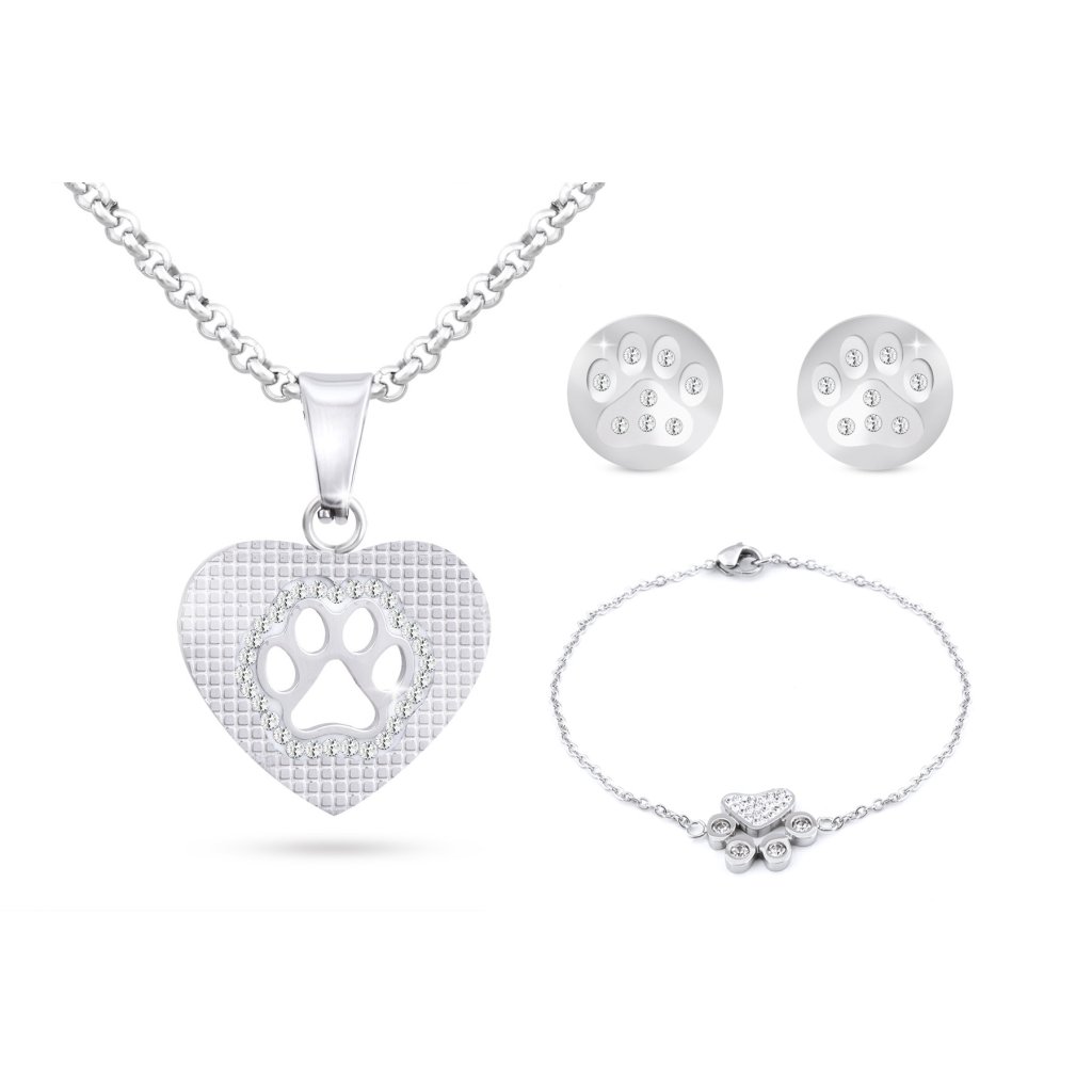 Set z chirurgické oceli tlapka v srdci, řetízek + náušnice + náramek se zirkony 199