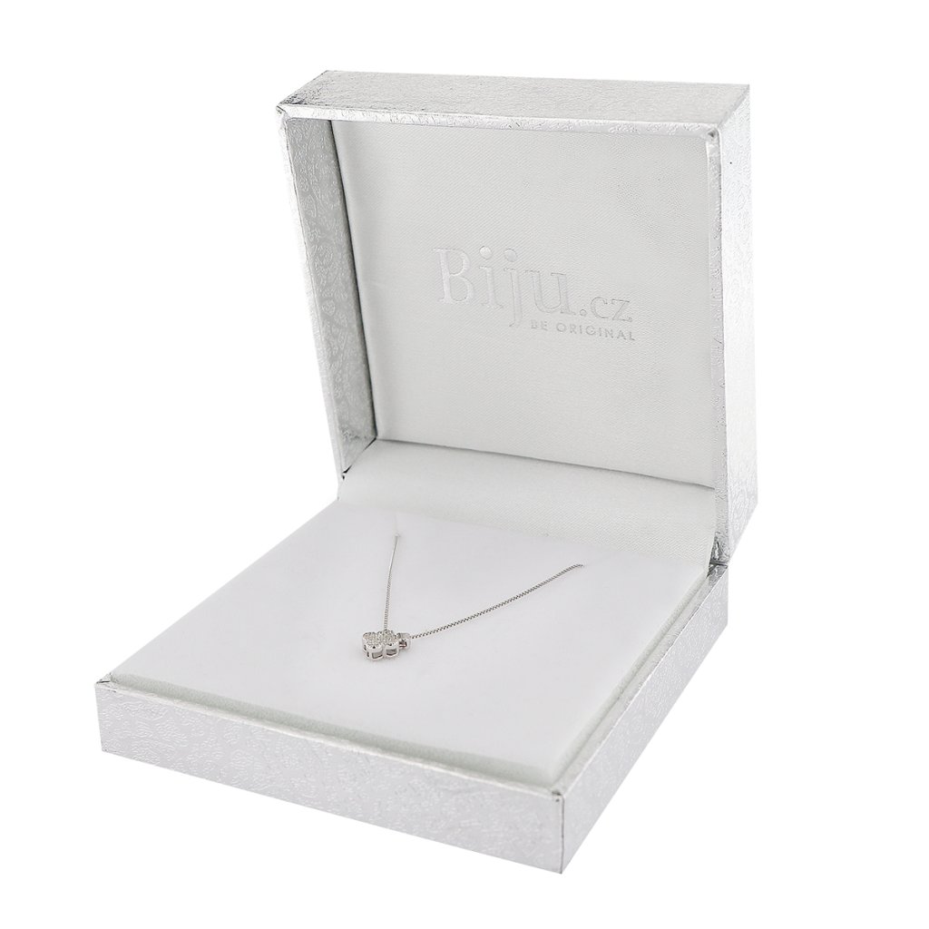 - Dodejte svému stylu nádech elegance s tímto jedinečným stříbrným řetízkem. Dokonalá tečka za každým outfitem; jemný řetízek ukrývá úžasný přívěsek ve tvaru kytičky. Hlavní kytička je vykládaná čirými zirkony, které s naprostým půvabem, zachycují odlesky světla, ať už jdete kamkoli! Stříbrná barva z něj dělá ideální doplněk ke každému oblečení, kterému dodá trochu jiskry, aniž by byl příliš výrazný. Rhodiování povrchu u stříbrných šperků zajistí, že se povrch stává tvrdší, stálejší a odolnější vůči vnějším vlivům jako je mechanický otěr, poškrábání, lidský pot, kosmetické přípravky a další. Rhodium má antialergické vlastnosti, díky kterým nedojde k podráždění citlivé pokožky. Zapínání na pérový kroužek. Stříbro je označen puncem ryzosti 925. Řetízek je zasílán v luxusní dárkové krabičce, kterou obdržíte zcela zdarma.
