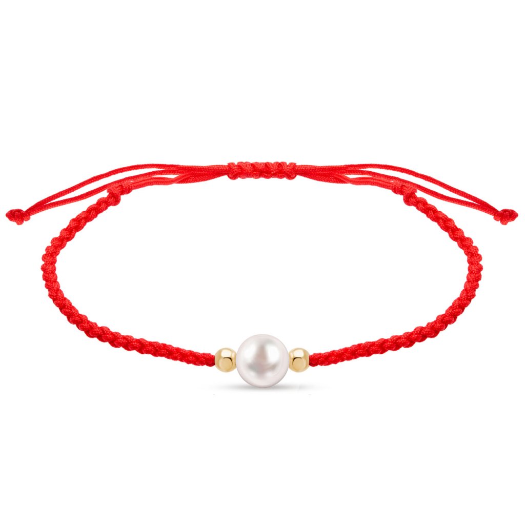 - Provázkový náramek z chirurgické oceli, bílá perla s červeným provázkem.