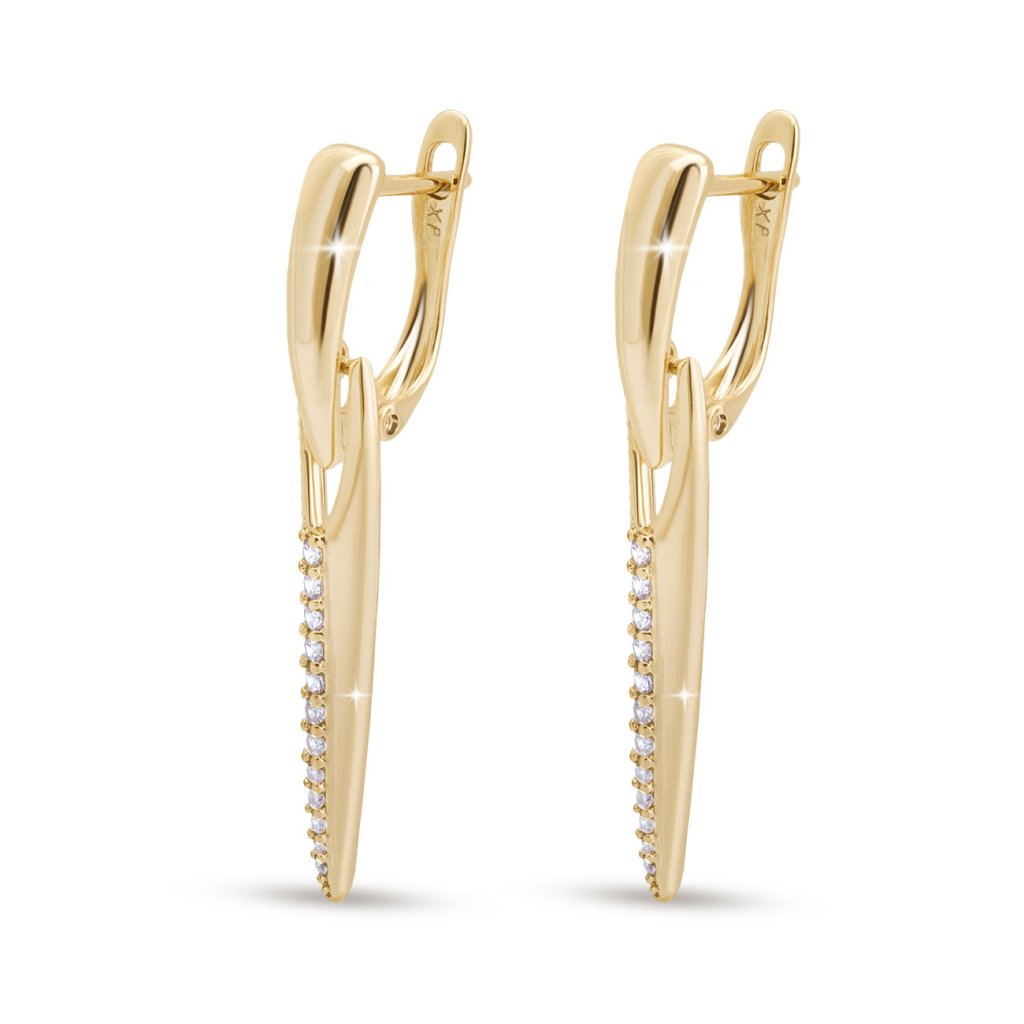 Visací pozlacené náušnice 14k zlatem. Podlouhlé úzké náušnice s čirými zirkony Tyto náušnice decentně doladí každý outfit a přitom nepotlačí ostatní módní doplňky.