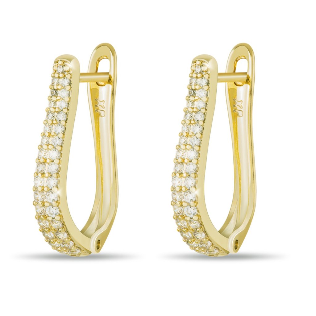 Zlacené náušnice 14k se zirkonem do tvaru podkovy 1003082