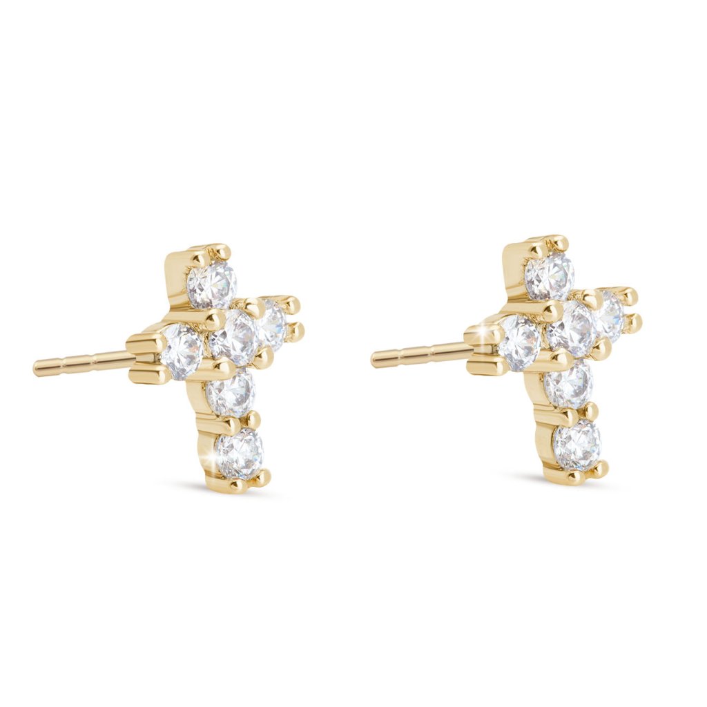 Pozlacené náušnice s motivem křížku 14k 1003123