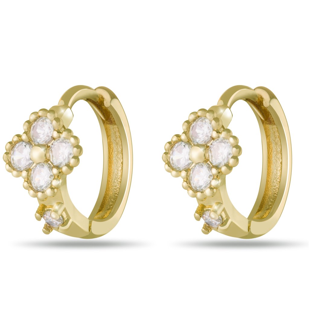 Zlacené náušnice 14k kruh květ zirkon 1003092