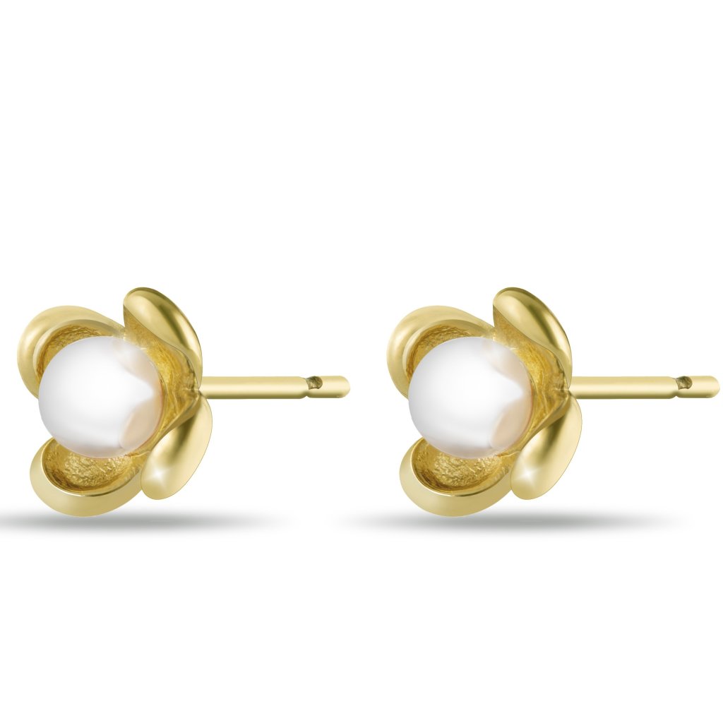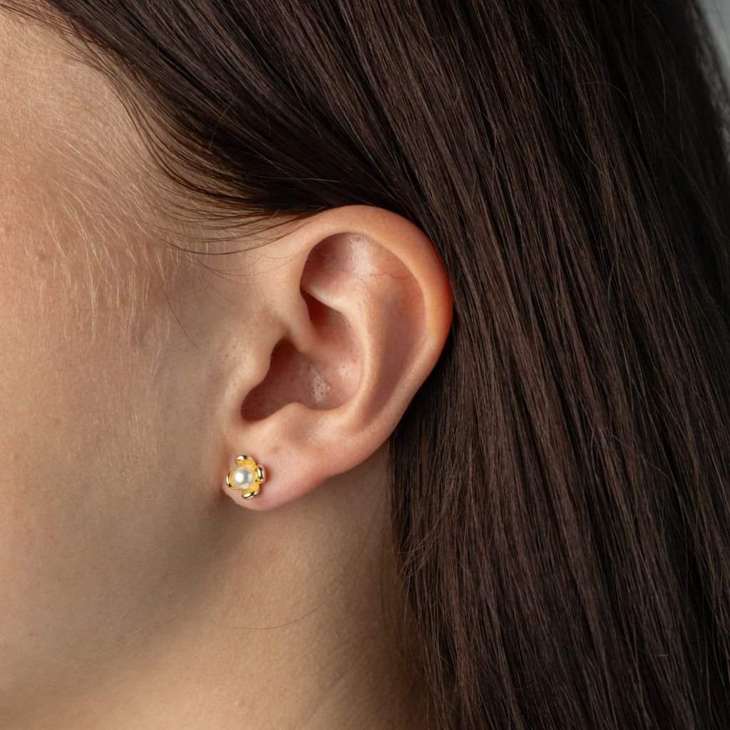Pozlacené náušnice 14K zlatem do tvaru kytiček s perlou